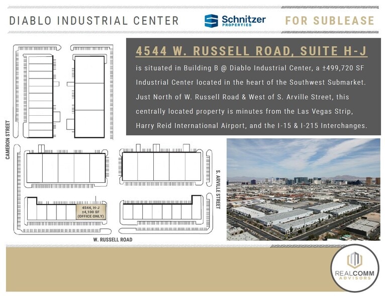 4544 W. Russell Road, Suite H-J - For Sublease: The Space Offers 4,100 SF of 100% HVAC Office Space (Large Reception / Showroom, Six (6) Private Offices, Large Open Office Area, Break Room, Storage Room, and Two (2) Private Restrooms. The Electricity is Covered in the Base Rent. Sublease Term Expires - 04/30/2030. See attached brochure for more information.