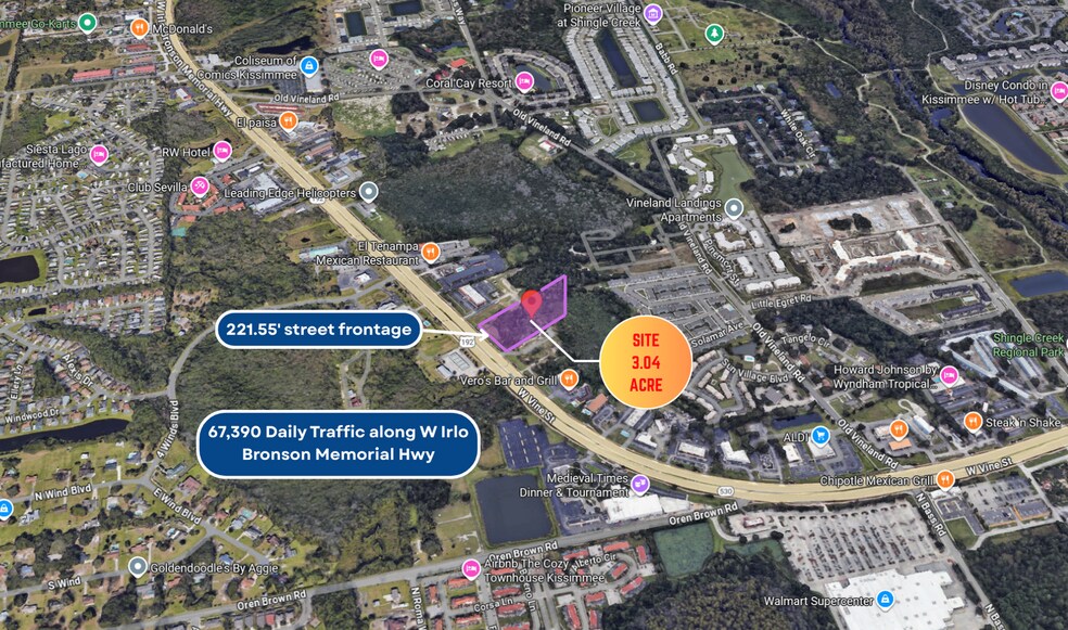 - Prime Location on W Irlo Bronson Memorial Hwy (US-192) Outstanding visibility with ±67,000 average daily traffic (AADT)