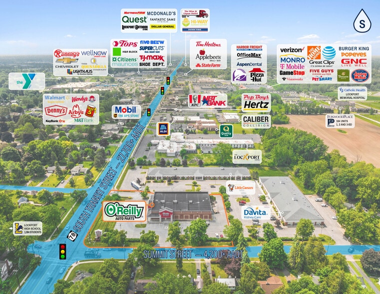 A former pharmacy, the Property sits on a 1.62-acre parcel at a 31,990+ AADT signalized intersection along the highly developed South Transit Street (State Route 78) retail corridor. DaVita Kidney Care and Little Caesars are immediate neighbors, and shopping centers to the south are anchored by The Home Depot, Walmart Supercenter, Harbor Freight, Runnings and Tops Friendly Markets.