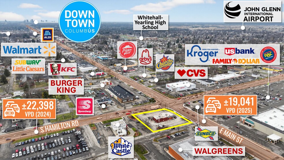 - ±41,439 VPD Highway Traffic Counts at Signalized Hard Corner of E Main Street (US-40) and S Hamilton Rd | 1-Mi to I-270 & I70; 5-Mi to Columbus Int’l