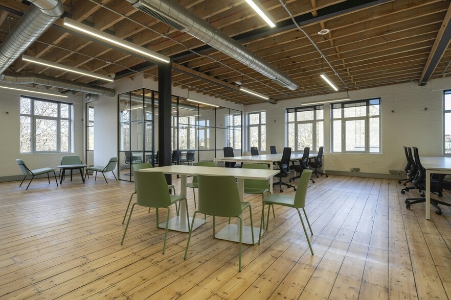 The available unit is found on the 3rd floor of this characterful former warehouse building. The unit is to be fitted to provide predominantly open plan accommodation with 12 desks, a 8 person meeting room, a breakout area and reception along with a tea point providing fridge and dishwasher.