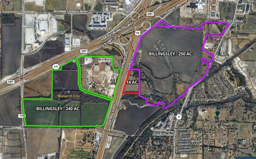 14.073 net acres located on US Highway 75 in Fairview. Adjacent to Billingsley Company's recently announced 250-acre mixed-use development. Over 1,000 feet of highway frontage. Three existing curb cuts along the service road. Mixed-use zoning.