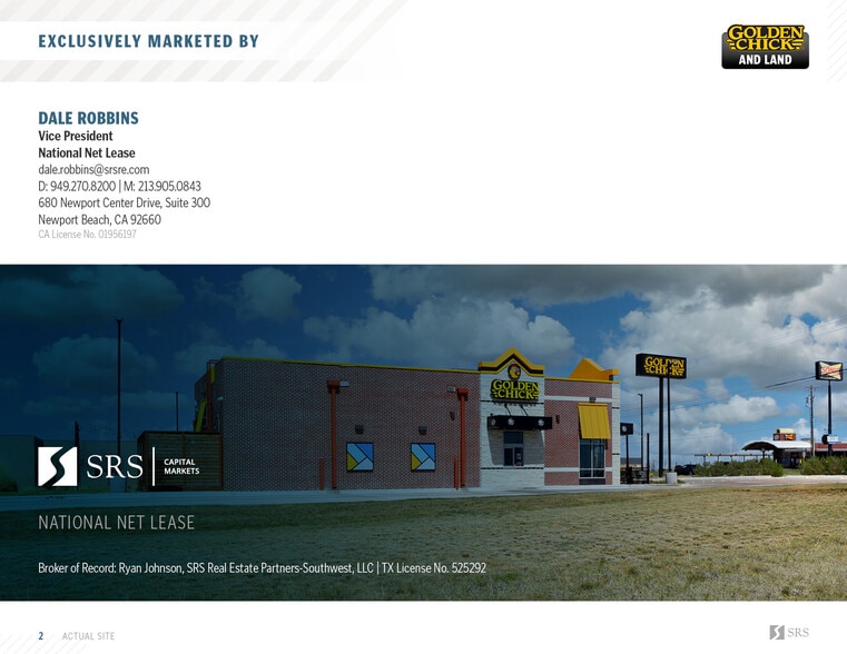 SRS National Net Lease is pleased to offer the opportunity to acquire the fee simple interest (land & building ownership) in an absolute NNN leased, Golden Chick and land investment property located in Killeen, Texas. The tenant, Golden Chick recently signed a brand new 20-year lease with 4 (5-year) options to extend, demonstrating their commitment to the site. The lease features 10% rental increases every 5 years throughout the initial term and at the beginning of each option period, steadily growing NOI and hedging against inflation. The lease is absolute NNN with zero landlord responsibilities making it an ideal, management free investment opportunity for a passive, out of state investor.