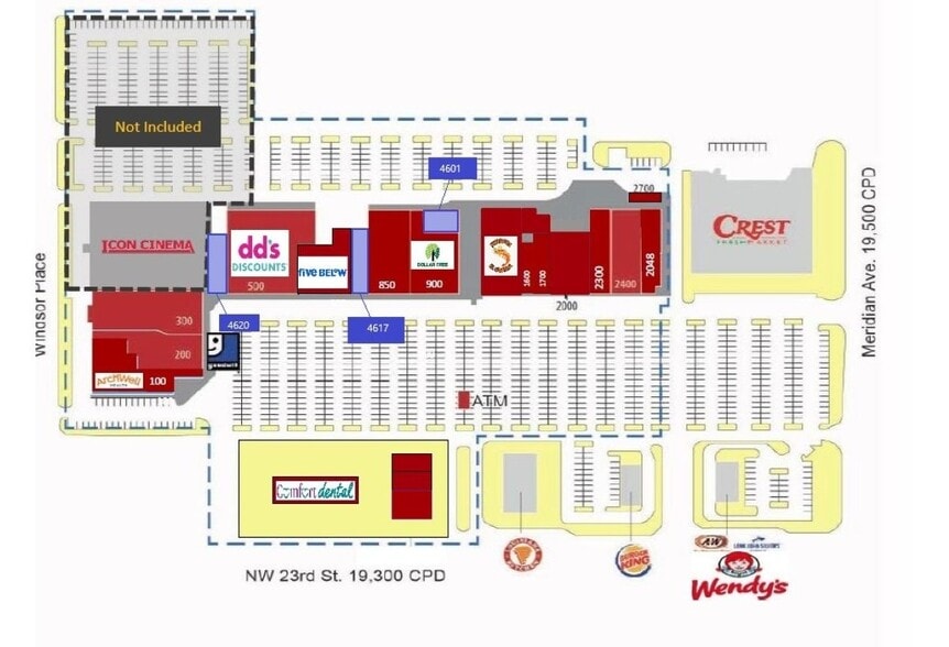 This property is the catalyst for the revitalization of the newly created Windsor District (The W), the theme of this district is diversity. The cultural and age diversity of this district exists nowhere else in Oklahoma City. The W proudly shares the heritages and customs from all around the world, through its restaurants, art and local festivals. Major retailers include Crest Foods, Its Fashion Metro, Burger King, T-Mobile, dd's discounts, Dollar Tree, Cato and B&B Theaters. This SE corner of NW 23rd and Meridian will showcase the iconic feature that marks the district. The City of Oklahoma City has started the revitalization of this area through its $13.2 million streetscape project, with a focus on walkability from its pedestrian-friendly intersections, sidewalks and decorative lighting. Creating a vibrant lifeway for the community