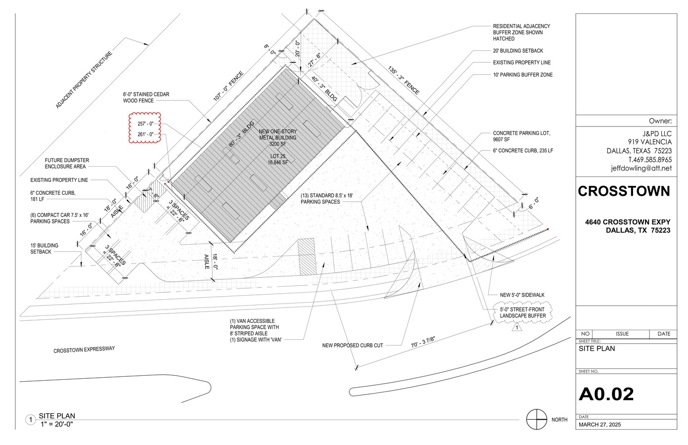 Coming Fall of 2026. New construction of a 40' x 80' metal building with 20 parking spaces. The owner will occupy 1600 sf for personal use and market 1600 sf for an approved Commercial Service use. Could be a restaurant, bar, convenience store, etc, many different uses under Commercial Services The interior will be partitioned and the 1600 sf available for lease will have separate 400 amp electrical, gas service and grease trap. The landscape will include many trees and a cedar fence installed in the rear and west side of building. Construction is underway. Located on busy 6 lane Barry/Crosstown Expy which is the loop around Fair Park. Good traffic count. Not far from the old Ford Assembly plant that is a busy industrial base for many companies. We will add an additional ADA rated Restroom on new tenant buildout.