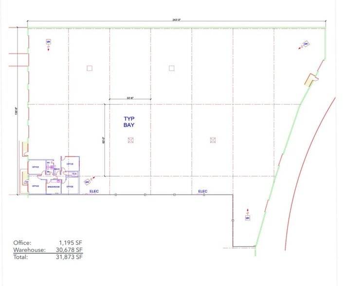 • 31,873 SF Available • 1,195 SF Office • 25’-27’ Clear Hight • Column Spacing 33’x 64’ • Sprinklered • 5 Dock High Doors • 1 Oversized Ramp • 3 Phase Power - 480 Volt • Available now • Contact Broker for Lease Rate; $2.09 OPEX