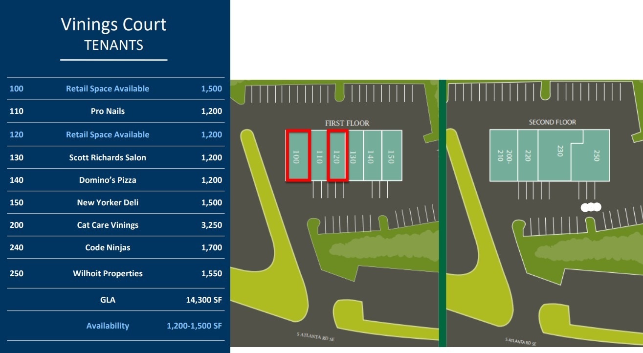 Strong Tenant base with history at center Well located on S. Atlanta Road, just ¼ mile inside I-285 and minutes from the heart of Vinings.