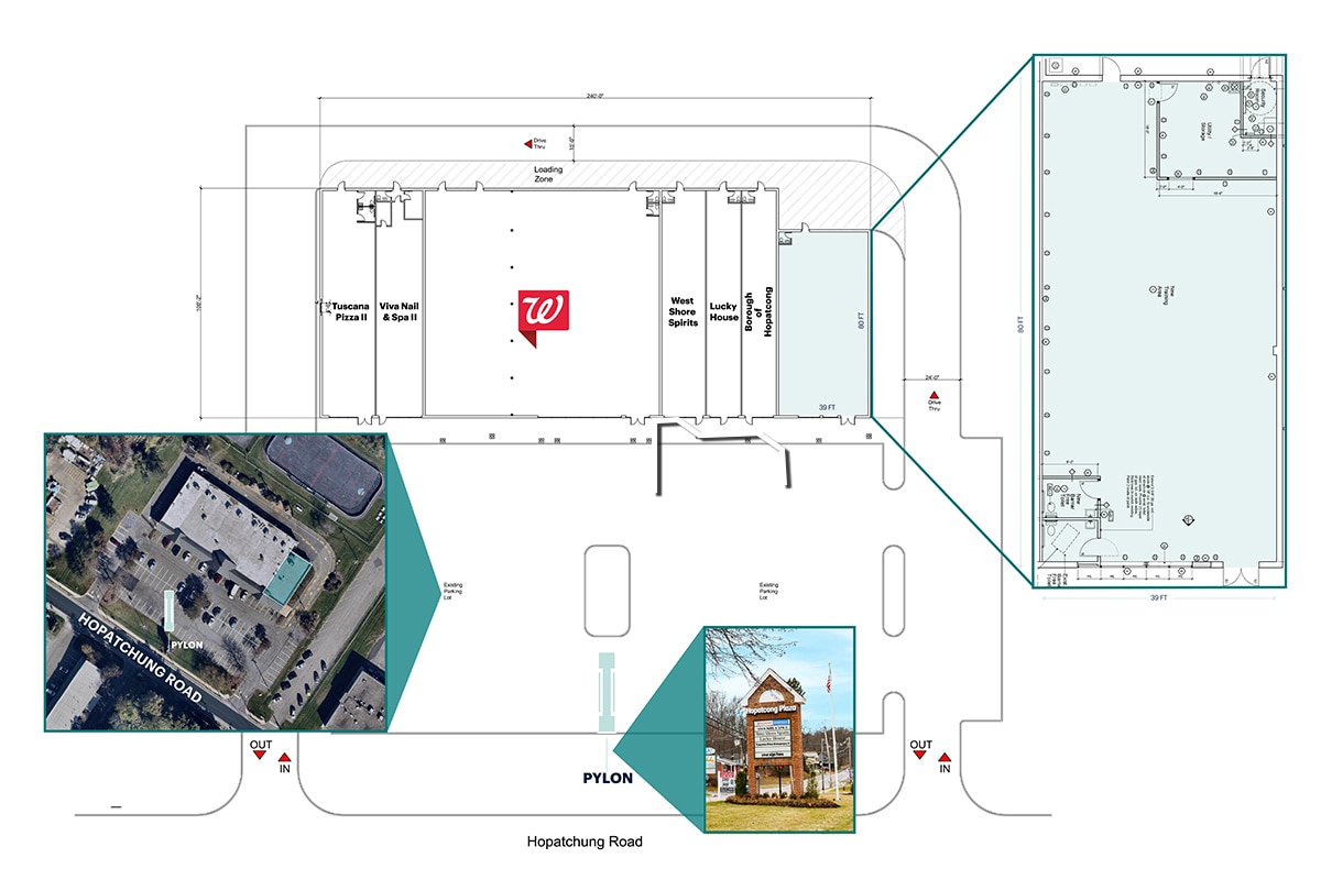 Walgreen's anchored center Two blocks from municipal complex Adjacent to town roller hockey rink, skate park, little league field, community garden, and fire department Across the street from USPS Less than a mile from Hopatcong High School and Hopatcong Lake Pylon signage available Ibuki Martial Arts is closing