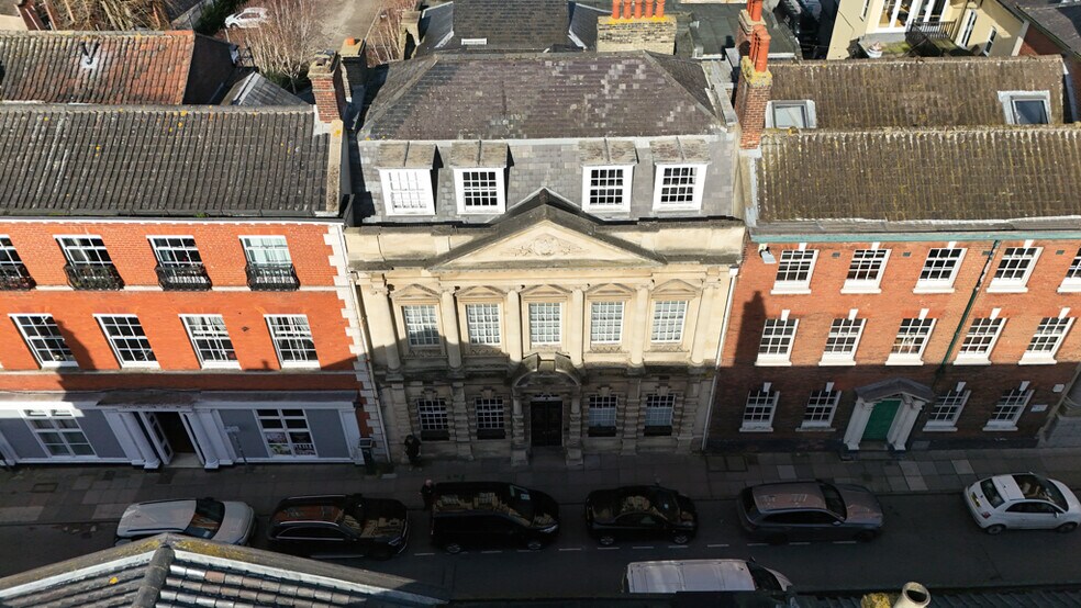 47 St Giles Street is a principally twostorey period Grade II Listed building with mezzanine, attic and extensive basement accommodation, forming part of the established historic townscape.