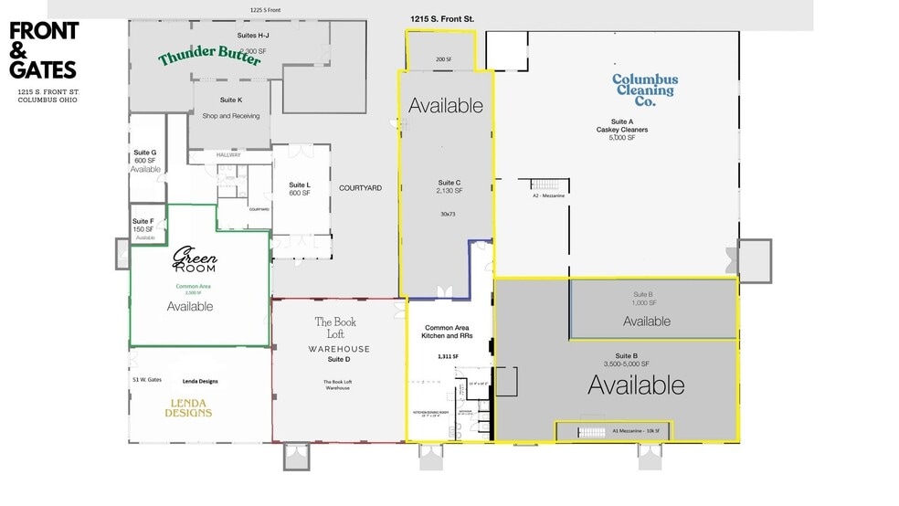 Available Flex Space for Lease in Merion Village. Spaces available for a range of uses with the main available space being 2,000-3,000 SF and up to 8,000 SF of contiguous space. Suite B and C combined creates 8,000sf of first floor space with a 2nd floor mezzanine of 10,000sf. Caskey continues to anchor the SE corner of the Building as Columbus Cleaning Co. This property features a central courtyard as a unique focal point and a rear driveway as a functional method of deliveries and access. Each area has 200 amp panels with heavy power available. Zoned for Manufacturing (M), the space accommodates diverse business operations. With outdoor storage or parking options on the west side and a spacious parking lot on the south side, this property maximizes flexibility. Centrally located just one mile south of Downtown, it offers quick access to RT 104 and South High St. It is less than a mile from I-71 via Greenlawn Avenue, providing unparalleled connectivity and convenience.