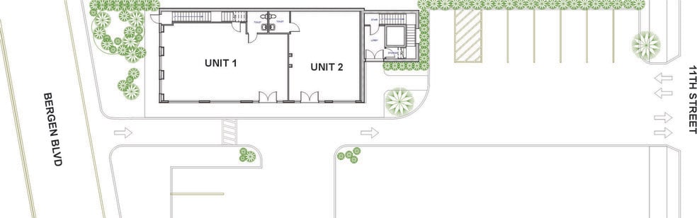 Strong visibility on Bergen Blvd. Modern facade with wraparound glass window panes building. Prime retail space on 1st floor and 2nd floor for the professional use. Brand-new commercial construction available April 1, 2026, delivered in vanilla box condition. First floor offers two units (1,682 SF and 993 SF) with the ability to combine. Second floor features a full-floor open layout ideal for professional use. Tenant responsible for all interior improvements. Suitable for retail, medical, office, and professional users, subject to zoning.