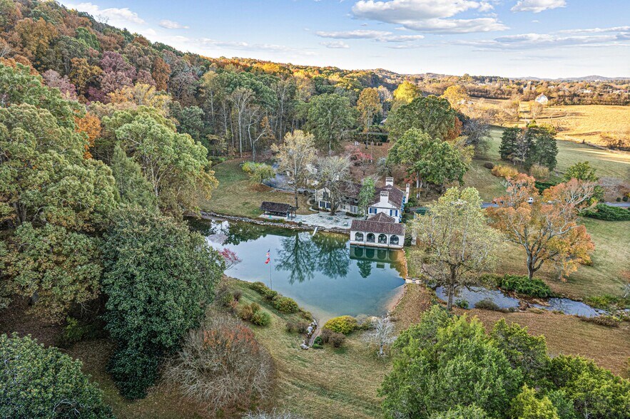 Being offered for sale for the first time in nearly a century, Hardwick Farms Estate is set on 736 +/- picturesque acres consisting of gently rolling pastures, wooded hills, a vineyard, a high-volume spring, a waterfall and a breathtaking spring fed recreational pond. Originally designed as a gentleman’s farm during the Great Depression, the estate which is listed in the National Register of Historic Places, includes a grand Spanish or Mediterranean Revival style residence containing 7,465 SF +/-, Guesthouse containing 5086 SF +/-, additional guest quarters and numerous outbuildings, and barns. Located in the heart of Bradley County, Cleveland, TN in the Great Appalachian Valley roughly 15 miles west of the Blue Ridge Mountains, this Estate is truly one of the hidden gems in the Southeast. Hardwick Farms is the estate of Christopher Lafayette (“C.L.”) Hardwick (1879-1961). Originally designed as a gentleman’s farm during the Great Depression, listed in the National Register of Historic Places, the estate includes a grand Spanish or Mediterranean Revival style residence, Guesthouse/quarters and numerous outbuildings, and barns. The landscape features include woodland, pasture, a natural spring, original waterways, a vineyard,and fruit trees. Hardwick House was designed by the renowned Knoxville architecture firm of Barber & McMurry in 1933 and constructed between 1933 and 1936. The home is a spectacular Spanish or Mediterranean Revival style residence with stucco exterior and gabled Spanish tile roof. On the ground floor are a vestibule, library, living room, sunroom (now used as a Billiard Room), stair hall, flower sink room, dining room, breakfast room, powder room, kitchen, pantry, and den with separate entrance and half bath. On the second floor are six bedrooms and 5 baths. The interiors of Hardwick House are largely unaltered from their grand, original state. Through the porte cochere you will find another bedroom and bathroom for your guests. Above the detached garage is another apartment consisting of a living room kitchen, 2 bedrooms, a bath and a screened porch. The home’s interior boasts arched openings, high style mantels, wainscoting, plaster scroll cornices, wood moldings and wood cornices. There are also numerous built-in cupboards in the bedrooms, towel cupboards in the baths, and a gun cupboard in the den. The main staircase has a wood banister over a wrought iron balustrade of elaborate plant-like scrolled balusters alternating the narrow plain iron balusters. Some decorative and functional changes have been made over time, but the original character of the house has been kept in-tact. The main guesthouse, also adorning the Spanish, Mediterranean revival style includes a spacious living room, den, dining room, eat in kitchen, 4 bedrooms and 4 bathrooms. There is an additional attached guest quarters that includes 2 additional bedrooms and 2 baths. There is also a recreational room that includes a half bath. The Hardwick House is situated on 736+- spectacular acres of pastures and trees and borders the spring fed swimming lake. The outdoor patio was constructed in the courtyard area created by the L-shaped wings of the house. This natural stone patio is accessible from the breakfast and flower sink rooms as well as the porch and balcony and provides an intermediate space for outdoor enjoyment and entertaining. A well-equipped, full outdoor kitchen and pagoda sit alongside the patio and lake. The property also features numerous barns, greenhouses equipped with gas heaters and potting shed, tennis court and original smokehouse.