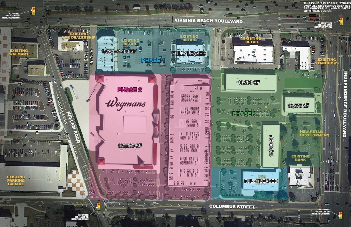 • Join VB’s first Wegman’s in the heart of Town Center! Along with Office Depot, AT&T, Lendmark Financial, Ideal Image, Velocity Urgent Care & more! • PHASE III AVAILABILITY: - Building D = ±1,200-19,200 sf (Fall 2026) - Building E = ±1,200-3,400 sf (Spring 2026) - Building F = ±1,200-16,800 sf (Summer 2026) • New & Existing Retail Development in the centrally located business district of Virginia Beach - second largest MSA in Virginia with 2M POP • Busiest Intersection in Virginia Beach - Traffic Counts of over 43K along Virginia Beach Blvd. & over 62K along Independence Blvd. • Adjacent to Town Center, a mixed-use project with over 900 residences and hotels, as well as Pembroke Square.