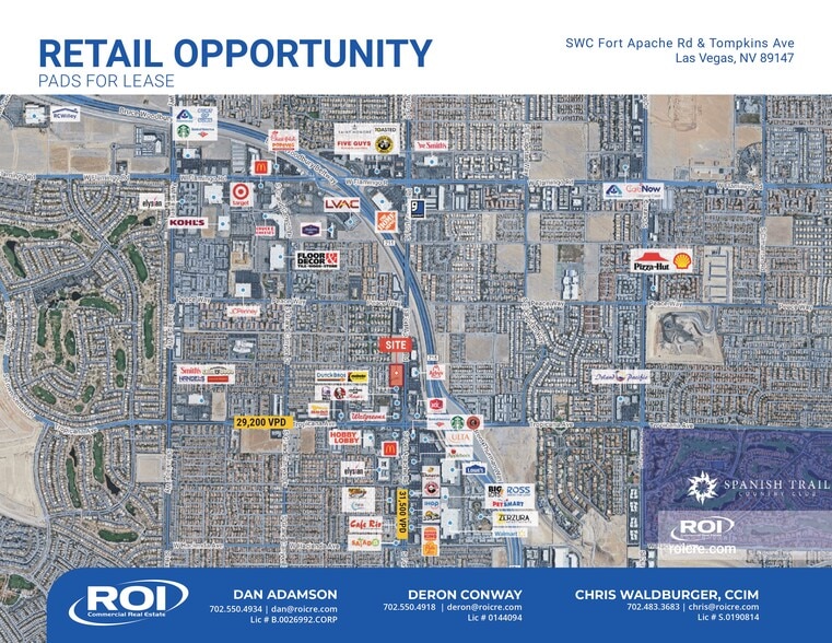 Mostly level lot, utilities close by, great visibility, off sites mostly complete, surrounded by retail and residential, close to 215 Beltway exit on Tropicana. New retail and residential under construction and planned.
