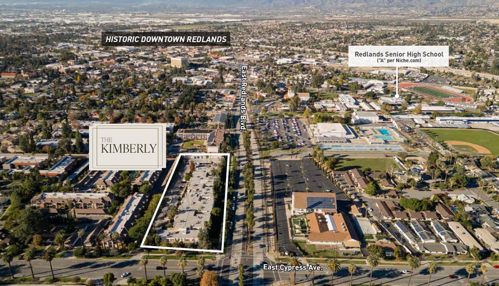 Berkadia is excited to exclusively offer another fantastic value-add opportunity. The Kimberly Apartments offers a rare opportunity to purchase 54 spacious units (average unit size over 1,500 sf) on over 2.5 acres of land with NO city rent control in a prime Redlands location. The pricing is very attractive at: $277K per unit; $153 per square foot; with a 5.3% going-in cap rate, going to 6.3% at market rent. This is the first time this property has been on the market in over 10 years. Kimberly Apartments is fully amenitized with a pool, fitness center, laundry rooms, and ample parking (more than one parking space per bedroom). The property is in a fantastic location across the street from Albertsons Market, Chase Bank, Panera Bread, Redlands Cleaners, Serendipity Salon, Naan Café Redlands, Chaca Tea Bar, and more. Minutes to UC Redlands, charming downtown Redlands with shops and eateries along Redlands Boulevard, and walking distance to Redlands High School (Ranked #5 Best Public High Schools in San Bernardino County).