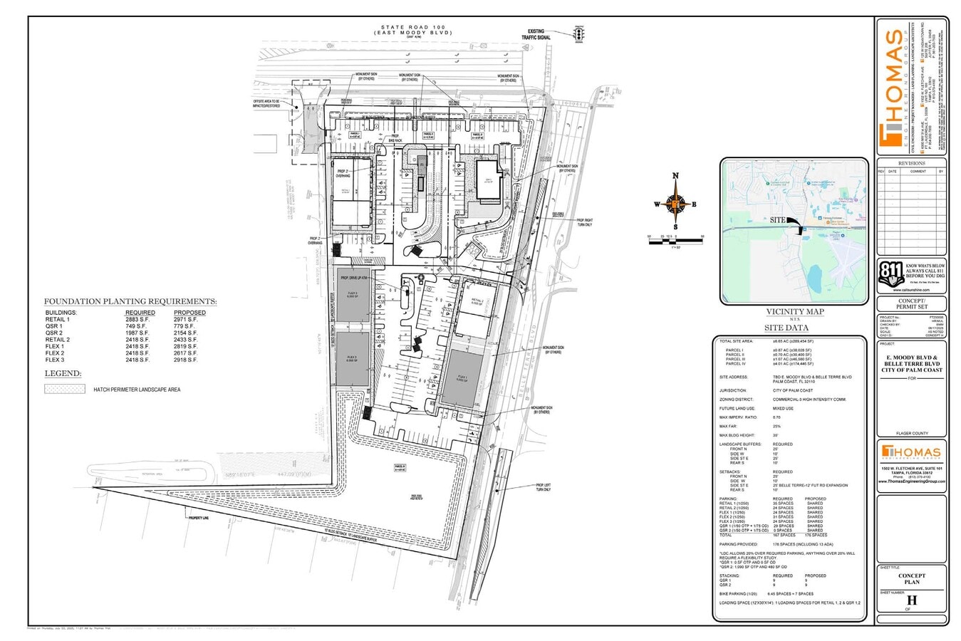 This high-visibility property on E Moody Blvd offers an exceptional opportunity for tenants. Strategically positioned along a major corridor, it benefits from high traffic counts of 37,000 vehicles per day on E Moody Blvd and 27,000 on Belle Terre Blvd. Property Details: Building Opportunities: 7,500 SF retail 4,500 SF restaurant 2,200 SF drive-thru QSR (all positioned upfront for maximum visibility) 6,000 SF retail and a 30,000 SF big-box space located in the rear of the property Key Advantages: Accessibility: Excellent visibility and direct access from E Moody Blvd, ideal for businesses seeking a central location. Growth Potential: Located in a developing area with increasing residential and commercial activity, ensuring long-term value. Located in a rapidly growing area with expanding residential and commercial developments Nearby Amenities: Close proximity to shopping centers, dining options, and residential neighborhoods. High visibility and accessibility from two major roadways Flexible layouts to accommodate business needs