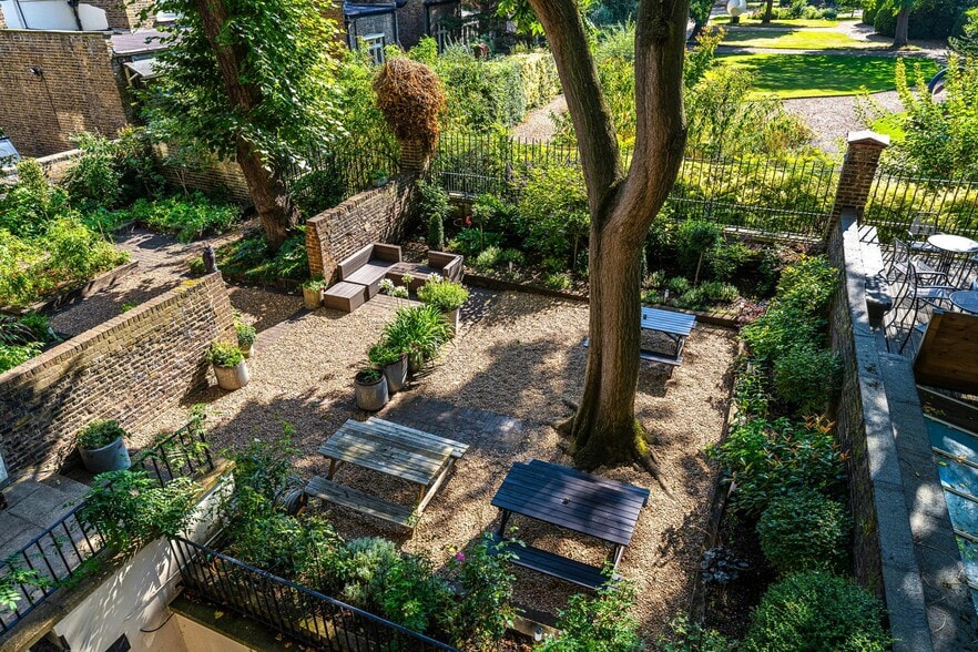 - Communal garden providing outdoor breakout space.