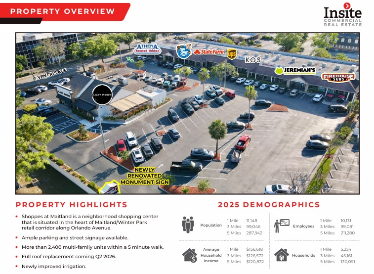 Shoppes at Maitland is a neighborhood shopping center that is situated in the heart of Maitland/Winter Park retail corridor along Orlando Avenue.