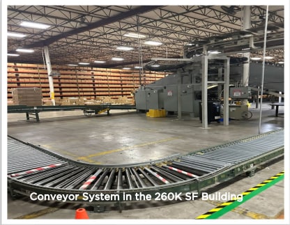 Building 1 offers 260,800 SF of industrial space designed for high-capacity warehousing and distribution. Featuring clear heights ranging from 24 to 26 feet, the building supports efficient racking and storage configurations. It is equipped with 2000 KVA power, providing substantial electrical capacity for heavy equipment and advanced operations. Tornado shelter (interior). Eight Blue Giant warehouse fans.