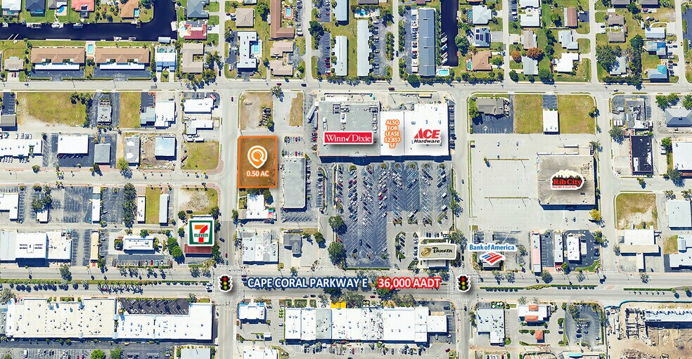 - Just off Cape Coral Pkwy (36,000 AADT) in the densely populated downtown district