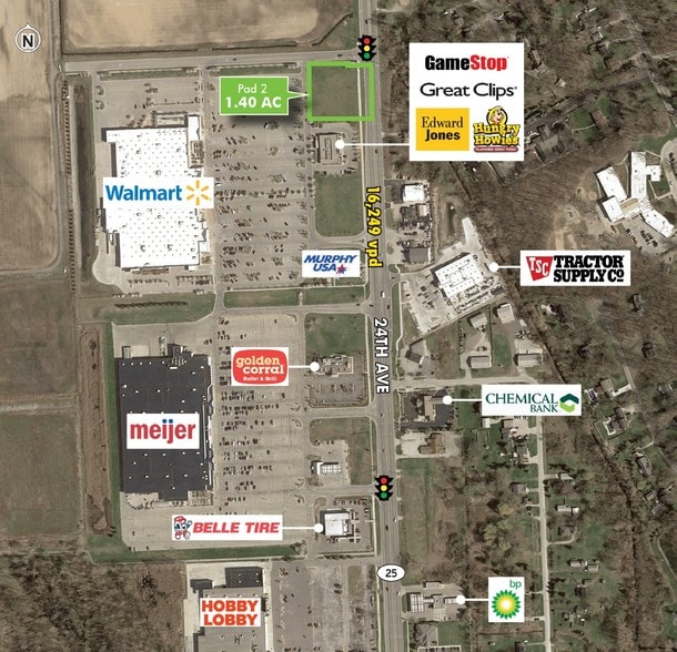 Trade area includes Walmart, Meijer, TJ Maxx, Barnes & Noble, Hobby Lobby, ALDI, Planet Fitness, Kohl’s, Gander Outdoors, Dunham’s Sports, Lowe’s, Home Depot, Tractor Supply