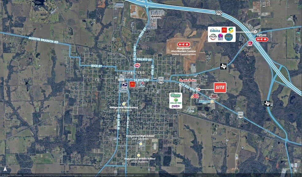• 10,578 SF sharing a 4.0 Acre property with just one other tenant. • Join national co-tenant AutoZone, helping drive a great amount of traffic to the site with 12,832 VPD. • This is a rare opportunity that is located just one (1) mile away from Downtown Hempstead. • Hempstead projected population growth is estimated at over 25% in the next four (4) years; in the direct path of the growth stemming from Houston. • Property has 2 entrances, excellent signage, and ample parking.