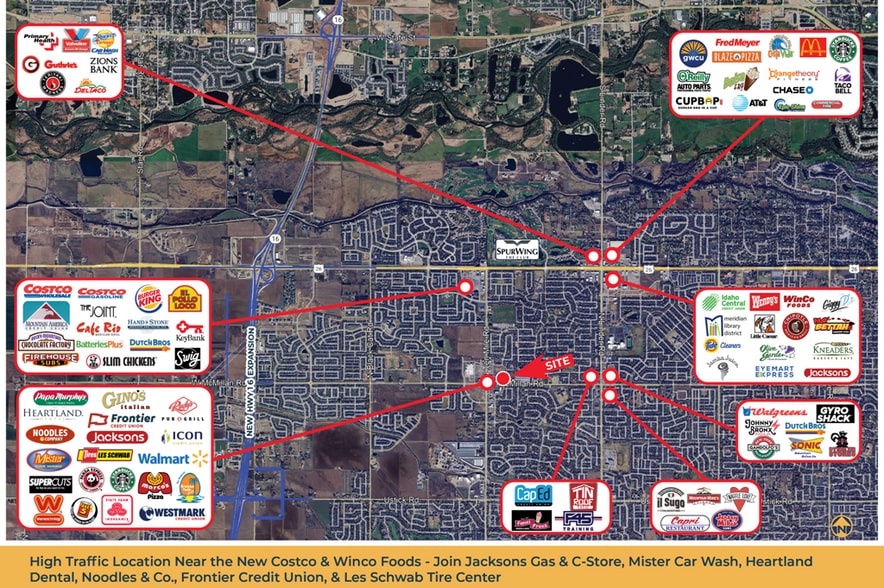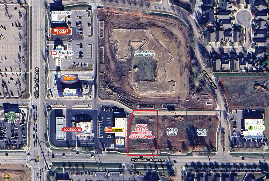 Now Listed For Sale, Lease & Build-to-Suit Ten Mile-McMillan -- Build-Ready pad site for sale, ground lease, and build to suit at Ten Mile and McMillan Roads, 0.88 acres - all utilities available to site. Join Jacksons Gas & C-Store, Mister Car Wash, Heartland Dental, Noodles & Co., Frontier Credit Union, & Les Schwab Tire Center. Potential uses include retail, restaurant, sale office or professional service provider type users. Surrounding tenants include Walmart, Icon Credit Union, Panda Express, Starbucks, Supercuts, Papa Murphy’s, Salon G, Westmark Credit Union, Labor Max Staffing, Gino’s Italian Ristorante, Rudy’s Pub & Grill, Four Seasons Spa & Pool, Gridiron Rehab & Fitness, Kvell Fitness & Nutrition, Dance Allegro Academy. Surrounded by new & proposed residential developments - located directly in the path of growth. High traffic location near the new Costco & WinCo Foods - 13,500 average daily traffic on Ten Mile Road.
