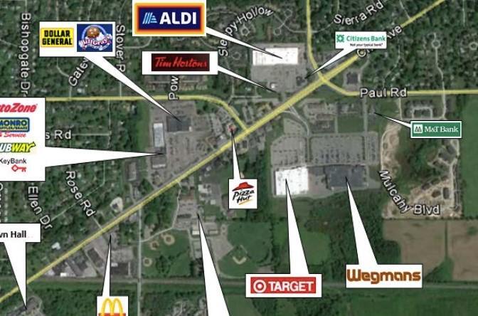 Gates-Chili is designated BN-R, which stands for business non-retail, and is situated between a Credit Union and Medical office. Call for more information.