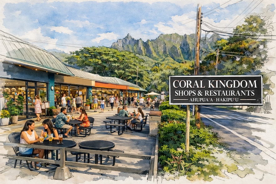 Coral Kingdom is a landmark property along the highly trafficked Kamehameha Highway, well known as one of Hawai’i’s most scenic coastal drives. Set against the backdrop of O’ahu’s Ko’olau Mountain Range and the Windward Coast, just minutes from Kualoa Ranch, this site is being reimagined into a vibrant multi-tenant retail destination that honors its Hawai’i roots while embracing a modern aesthetic. Five new retail spaces are set to be delivered at the end of 2025, perfect to showcase the next generation of local entrepreneurs and the best of Hawaiian retailers. This revitalized property, where heritage and innovation meet, is poised to become a must-visit destination for visitors and locals alike.