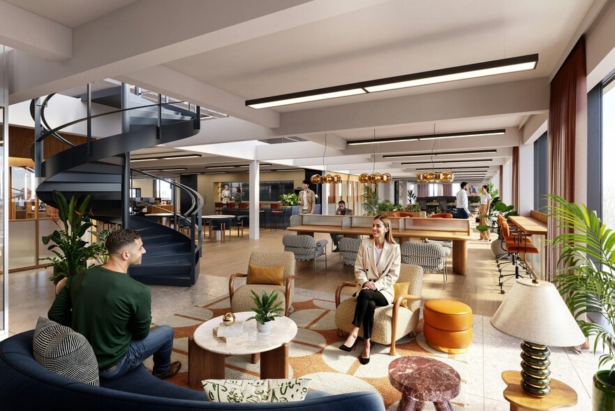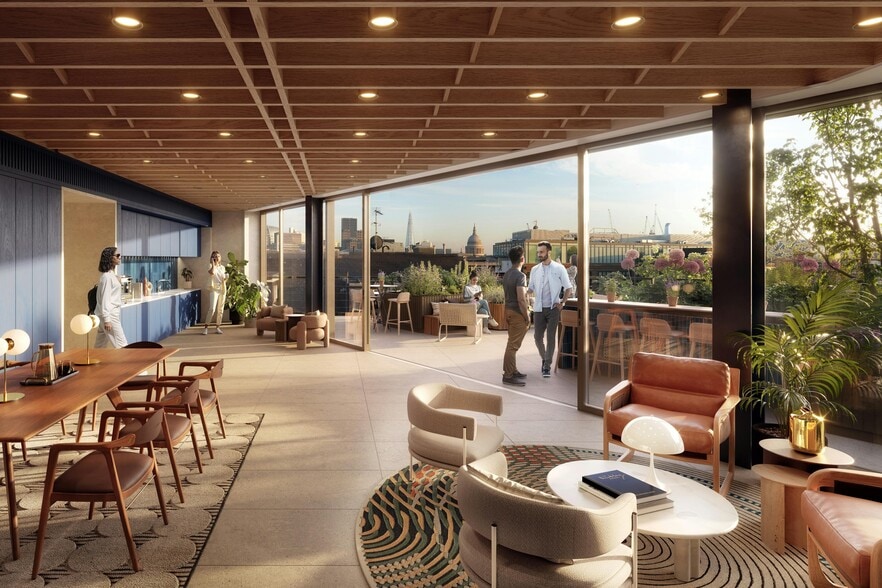 An 89,050 sq ft island site offering uniquely sized floor plates at 16,500 sq ft. The building is undergoing a full refurbishment including reconfiguration of the existing fourth and mezzanine level with an increased floor print. Additional works include introduction of a new communal pavilion and landscaped communal roof terrace, together with improvements to the arrival experience and enhancing the end of trip facilities.