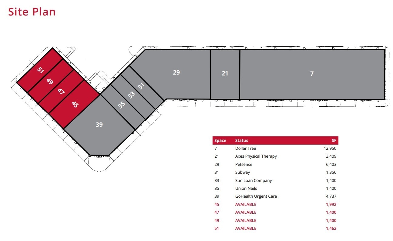 | Center Type | Strip Center | Gross Leasable Area | 21,000 SF |