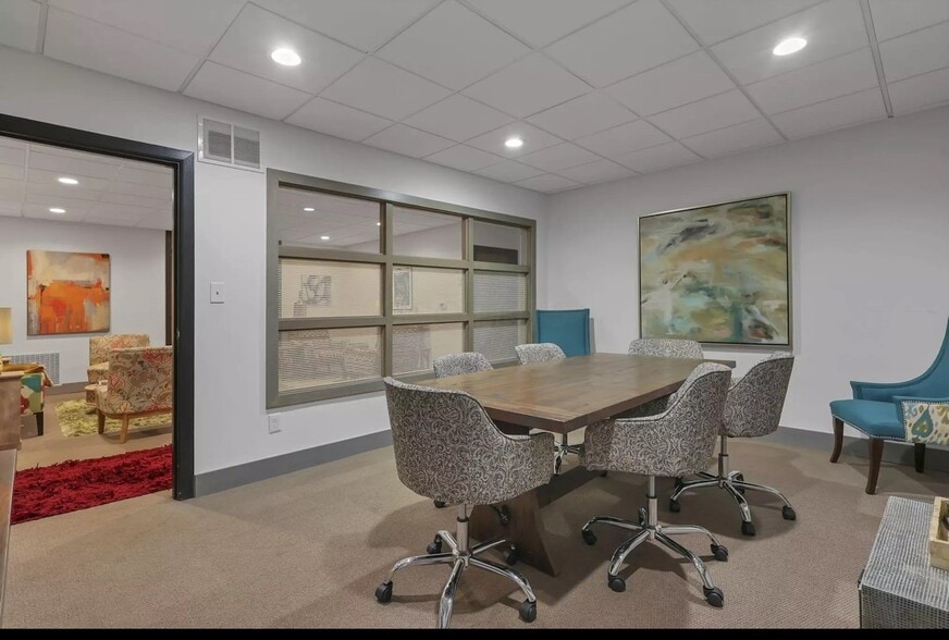 Single professional office available to lease with access to shared amenities including conference room, reception area, and kitchen.