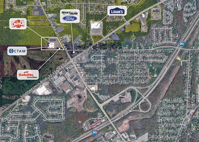 - Well-maintained campus-style setting with ample signage opportunities near the Camp Road and Southwestern Blvd. intersection