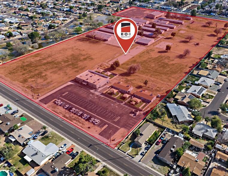 This school site presents a rare infill redevelopment opportunity in the heart of Glendale. Located at 4932 W. Myrtle Avenue within one mile of downtown Glendale, the property offers convenient regional access with Interstate 17 and Interstate 10. The surrounding area is characterized by established residential neighborhoods supported by neighborhood serving retail at key intersections. The campus was constructed in 1977 and consists of 18 single story masonry buildings totaling approximately 65,389 square feet situated on a substantial 19.10 acre parcel. The site features access points from both Myrtle Avenue and Orangewood Avenue, two asphalt paved parking areas, and expansive outdoor improvements including a large grass field, five basketball courts, and two shaded playground areas. Zoned R1 6 and located outside of a designated flood hazard area, the property offers a legally permissible existing use with potential for alternative residential or institutional redevelopment, subject to municipal approvals.