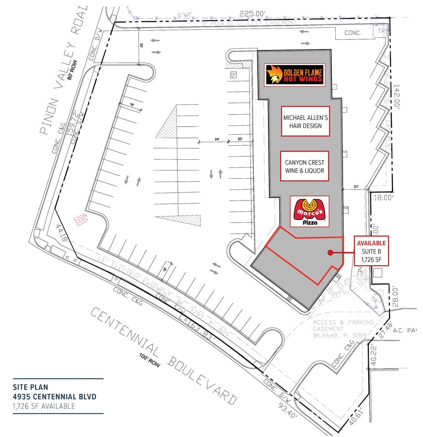 Centennial Shopping Center located at the corner of Centennial Blvd and Pinon Valley Rd, offers great visibility and access, ample parking and pylon signage on Centennial Blvd. Other tenants in the center include Marco’s Pizza, Canyon Crest Wine, Liquor, & Beer, and Golden Flame Hot Wings. Great location! Surrounded by above average household incomes, densely populated neighborhoods, several large office users and corporations, strong daytime employee population, high traffic counts on Centennial Blvd, and close proximity and access to I-25.