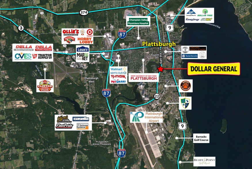 This Dollar General is highly visible as it is strategically positioned on S Catherine Street seeing 11,555 cars per day. The 5 mile population from the site is 29,804 and the 1 mile average household income is $53,974 per year, making this location ideal for a Dollar General. The store is surrounded by residential homes and 0.7 miles from the State University of New York Plattsburgh campus (4,500 students & 900 staff)! The Subject offering represents an ideal opportunity for a 1031 exchange buyer or a “passive” investor to attain the fee simple ownership of Dollar General. This investment will offer a new owner continued success due to the financial strength and the proven profitability of the tenant, the nation’s top dollar store. List price reflects a 7.15% cap rate based on NOI of $119,754.