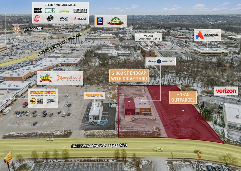 Prime 1 acre pad (7,000 SF) available adjacent to brand new 2 tenant retail building in highly desirable location in Belden Village's prime retail corridor.
