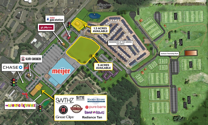 - Rare 5-acre land development opportunity at The Greens at Belden directly adjacent to Meijer in Belden Village trade area