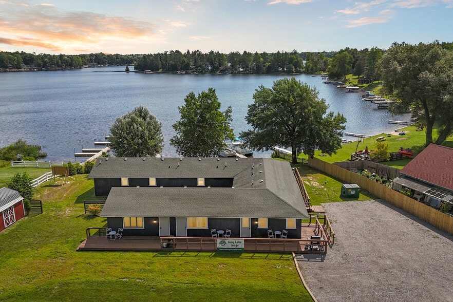 The Long Lake Lodge is a completely renovated turn key business. The business has the potential to make upwards of $225,000 per year. This entire business was just built out and is fully staffed. The building itself was just fully renovated, staged and furnished. This was all done by a team that has a track record of turning mom and pop hotels into thriving hotel businesses. The Long Lake Lodge features over 125ft of pristine lakefront on the highly sought after Long Lake. It has a 90ft private sandy beach with fire pits, BBQ grills, a wrap around deck, a brand new large parking lot, two private docs, 5 kayaks for guests to use, and is partnered with a pontoon boat rental company. The pontoon Rental Company, Long Lake Pontoon Rentals is also for sale, separately. The Long Lake Lodge is composed of 7 units, a laundry facility, storage/supply room, and a new large shed. Rooms 1-3 (lake side) are lake view rooms with 2 bedrooms, a living room, kitchenette, and bathroom. Room 4 (lake side) is a lake view room w/1 bedroom, 1 bathroom, living room and kitchenette. Rooms 5 (street side) is a 1 bedroom, 1 bathroom w/living room & kitchenette. Room 6 (street side) is a studio w/2 Queen beds, a bathroom and kitchenette. Room 7 (street side) is 2 bedroom w/kitchenette & bathroom. All 7 units can be rented out for over $2000/night in income to family reunions, corporate retreats, wellness/church retreats, and team bonding events. Use this property to host your entire family and rent it out to pay your bills! Renting it out is hassle free as the turnkey business has already been built out for you! The property is listed on AirBnB, VRBO, Expedia, Booking, etc has a fully built out PMS, website, automated door lock system and is fully operated by on-site staff.