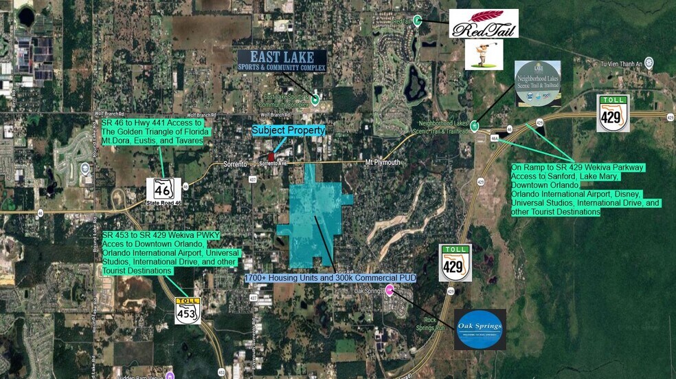 Offering 3.28 +/- acres on highly traveled Sorrento avenue. Perfect for retail development that can take advantage of it’s proximity to Mt. Plymouth and Mt Dora, while also being surrounded by many planned and completed residential developments.