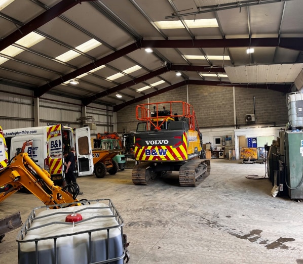 The main workshop is accessed via two full-height electric roller shutter doors and benefits from an integrated inspection pit, sodium downlighters, a warm air heating system, and in-situ fuel tanks. A single personnel door also provides external access.