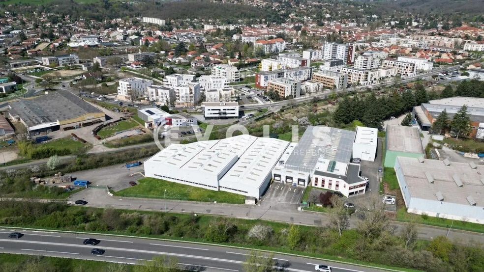 Le site industriel en bordure de l'A450 bénéficie d'une belle visibilité, il dispose également de 5 portes à quai, de 3 portes sectionnelles, d'un compteur électrique tarif jaune et de bureaux à rénover.