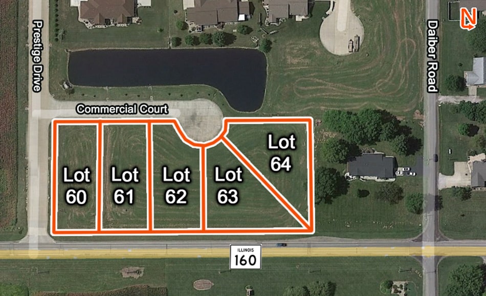 Commercial Development Sites 5 Commercial Lots ranging from 0.43 – 2.39 Acres located just North of Troxler Avenue at the entrance of Prestige Estates. Frontage on IL-160