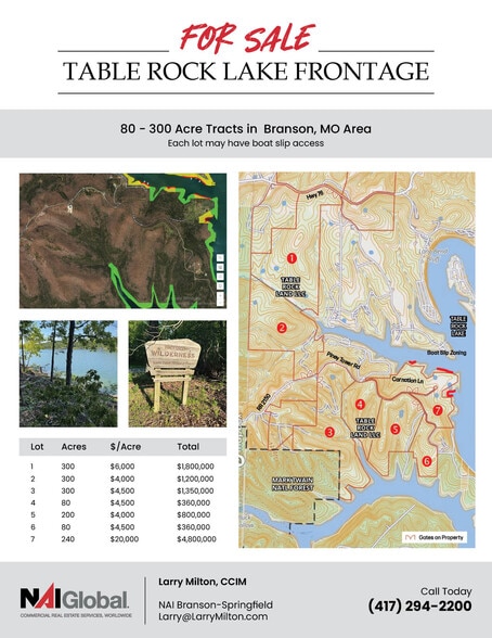 Table Rock Lake Frontage Boat Slip Area may be available Lots from 80 to 1,500 acres available