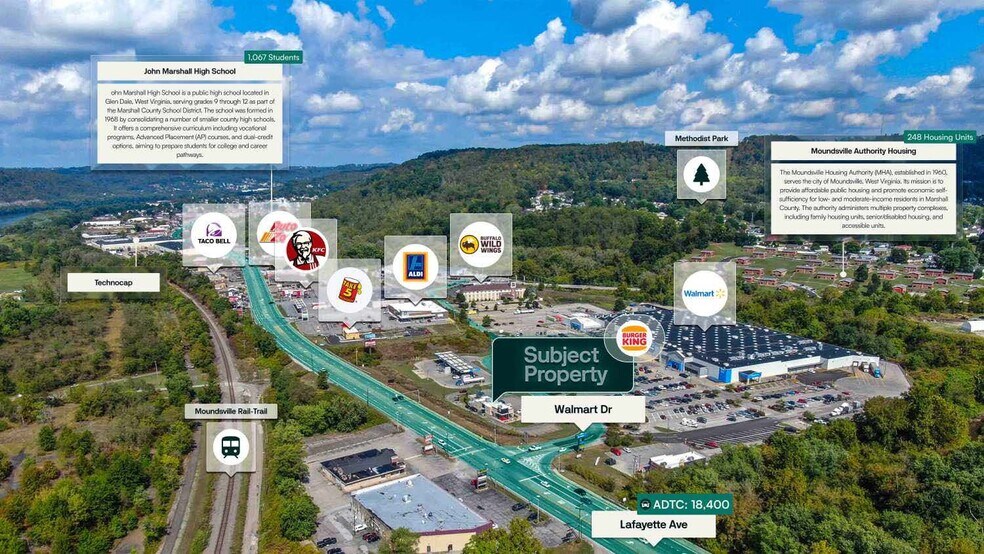 Bang Realty is pleased to present the exclusive listing for a Burger King located at 5 Walmart Dr, Moundsville, WV 26041. The site consists of roughly 2,860 rentable square feet of building space on an estimated 0.91-acre parcel of land. This Burger King is subject to a 20-year Triple Net (NNN) lease, which commenced 3/17/2016. The lease has scheduled 1.00% annual increases start next year (2026).