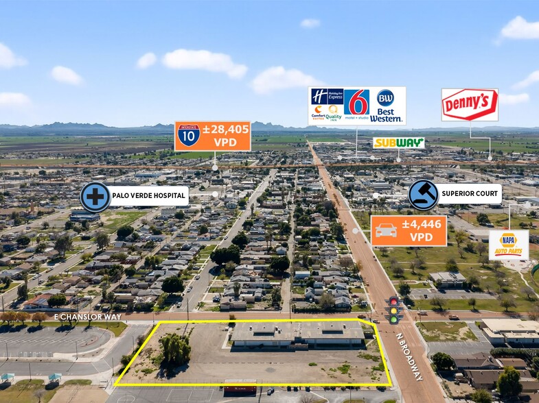 - Signalized Hard Corner with ±4,446 VPD Traffic Counts on N Broadway; Positioned 1.2-Mile From I-10 Traffic Over ±28K VPD