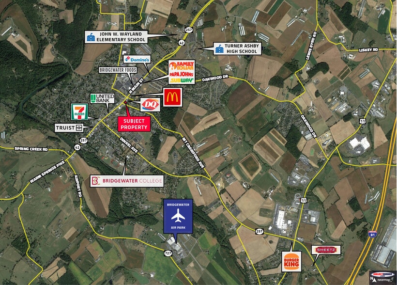Situated on a 0.59-acre lot at a signalized hard corner, this 3,500sf free-standing building offers excellent accessibility and exposure. The property includes 26 parking stalls and dual drive-through lanes, ideal for businesses that depend on quick-service or drive-through operations. The property is located in a key commercial corridor with national restaurant chains like McDonald's, Dairy Queen, and other well-known brands. Nearby parks and Bridgewater College serve as additional traffic generators. With approximately 14,000 vehicles passing by daily, the property offers strong visibility and a steady stream of potential customers.