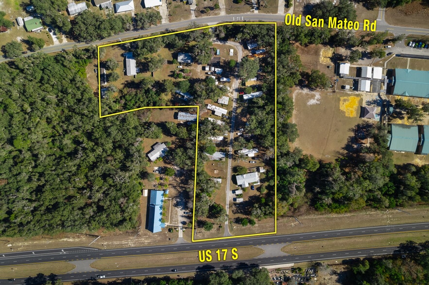 Attention Investors! Rare opportunity to acquire a well-established mobile home park situated on 4.77 +/- acres, zoned RMH. Known as San Mateo Villas, this income-producing property features 26 total sites, including 22 mobile home lots and 4 RV sites. The park is attractively set with beautiful oak trees, offers both front and rear access, and is equipped with onsite fire hydrants, public water, and septic systems. Public sewer is available nearby. The seller does not own any units - all sites are lot rentals, minimizing maintenance responsibilities. Current occupancy includes 18 mobile home lots at $300/month and 4 RV sites at $400/month. County water and FP&L electric are billed directly to the tenants; RV site utilities are paid by the seller. The property is conveniently located near the St. Johns River in a growing area, with new marina and RV park recently completed just north of the property, further enhancing long-term value & demand. Additionally, an adjacent 8.5 +/- acres may be available for purchase from a separate owner, providing expansion or redevelopment potential. Owner is retiring - bring all offers! Don't miss this excellent investment opportunity with a strong cash flow.