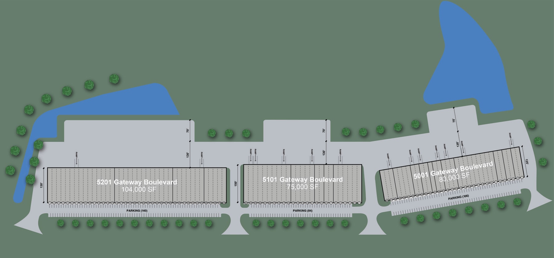 - Industrial park consisting of three top-of-the-line facilities ranging from 75,000 to 104,000 square feet
