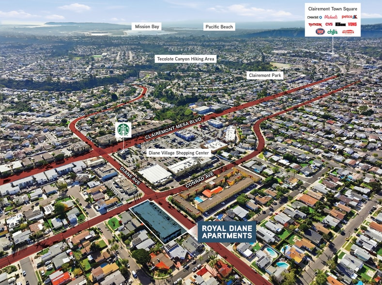 Royal Diane Apartments is a well-maintained 27 unit garden-style apartment community in the rarely available Clairemont submarket. The property provides investors an opportunity to acquire a strategically located asset with significant upside near many major retail centers and employment hubs in San Diego.